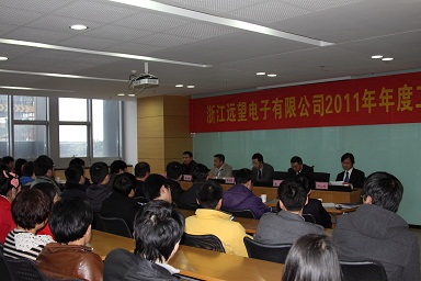 ? 2012年1月17日,浙江遠望電子有限公司2011年年度總結暨表彰大會(huì )隆重召開(kāi),遠望電子公司百余名員工齊聚一堂,共饗盛典。